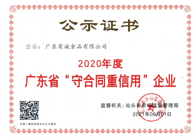 2017被廣東省科技廳認定為“廣東省潮汕特色糕餅工程技術研究中心” |
